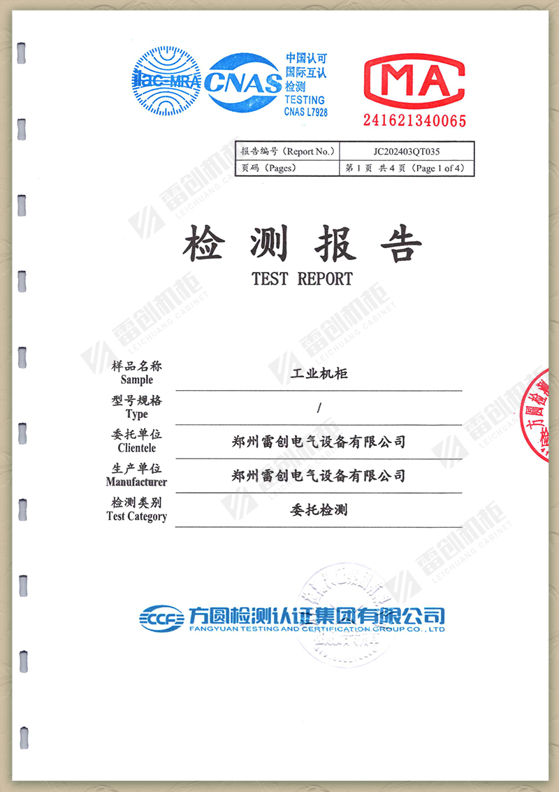 雷創電氣:工業機柜外殼防護等級(IP55)檢測報告